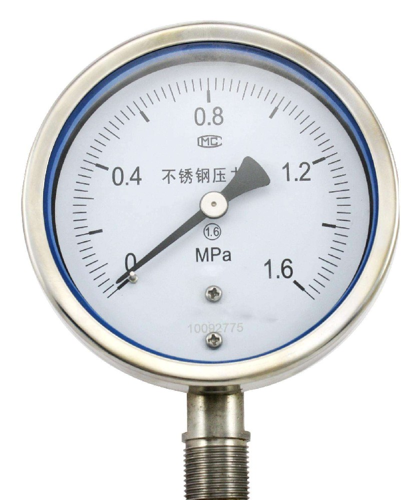 不銹鋼壓力表采用直接接觸式接頭和感壓元件材料,采用icr18Ni9T、Ocr18Ni12Mo2Ti、 sus316,結(jié)構(gòu)為全密封型,具有較強的防被測介質(zhì)腐蝕和抗環(huán)境腐蝕的能力。不銹鋼壓力表適用于腐蝕性較強的適合不銹鋼元件檢測的介質(zhì)和惡劣的外部腐蝕環(huán)境中 ,不銹鋼壓力表**應(yīng)用于石油、化工、冶金等工業(yè)。